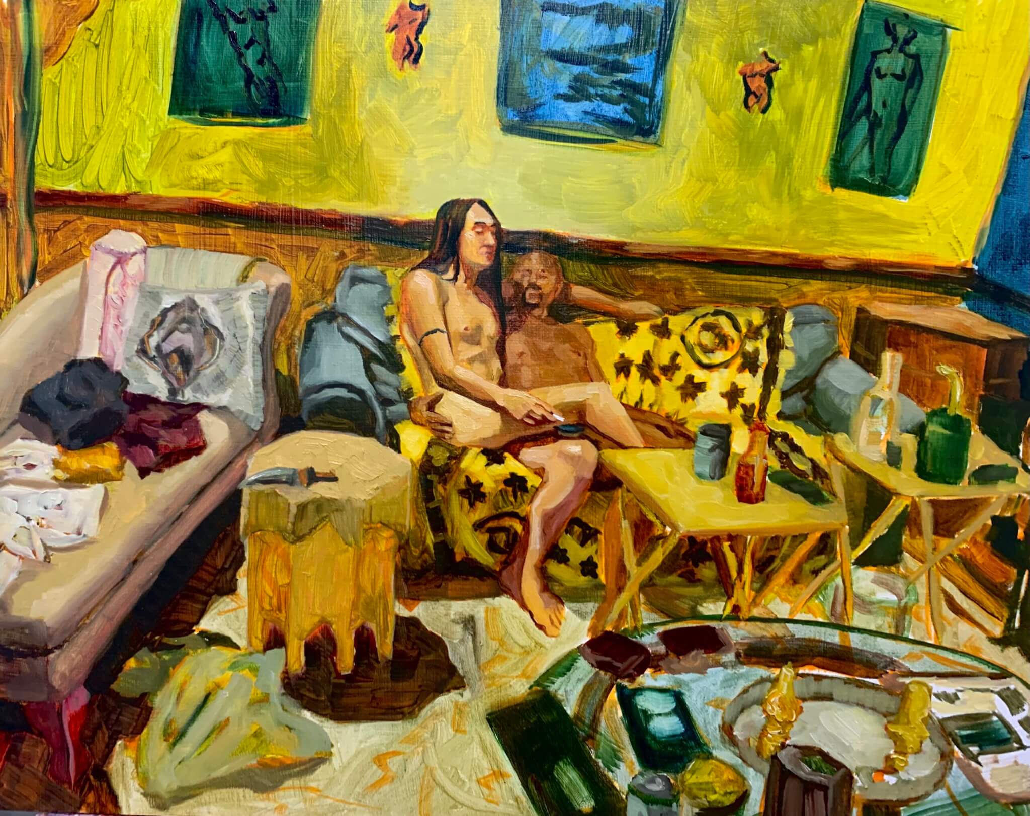 O’Dwyer’s solo exhibition is a colorful window into the artist’s community of friends, lovers, trans folks, and leather dykes. Featuring figure paintings, objects, and zines, the show celebrates queer love and intimacy, the beautiful complexity of bodies, and “the healing and vulnerable act of seeing and being seen.” It showcases O’Dwyer’s talents not only as a painter but as a community organizer through Dirty Queer Living, a collaborative zine project exploring trans and leatherdyke experiences across time and space, lovingly dedicated to the late Boston artist/educator Danielle Abrams. Through tender portraits and everyday scenes of peace and pleasure, O’Dwyer’s exhibition shows how a “dirty queer home” can be found in many people and places.