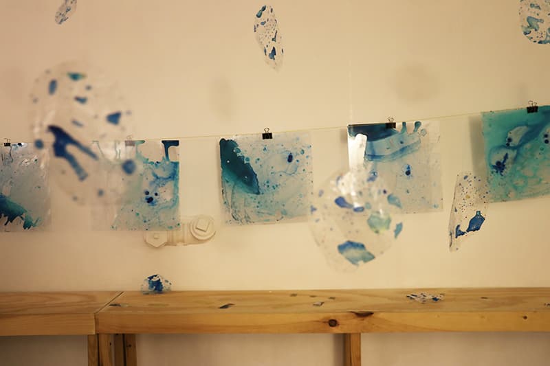 Solei is a prolific artist, musician, and arts activist in the Boston DIY community. She performs both as a solo artist and in her band, Atlas Lab. Her practice relies on deep appreciation of New England’s art community. I caught up with her after the opening to learn a little bit more about her process and the practice behind her immersive installation.