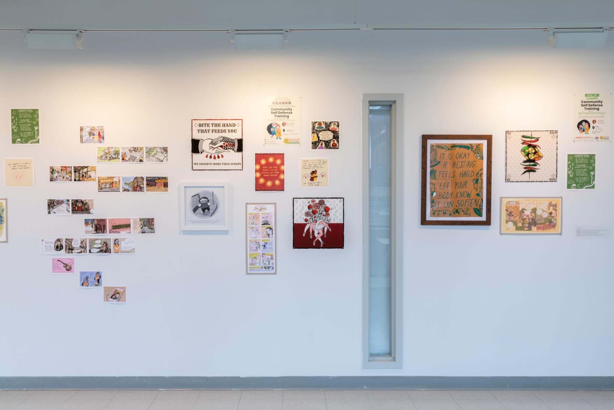 Installation view, “Call and Response: Illustration in Uncertain Times,” Pao Arts Center, 2023. Courtesy of Pao Arts Center. Photo by Mel Taing.