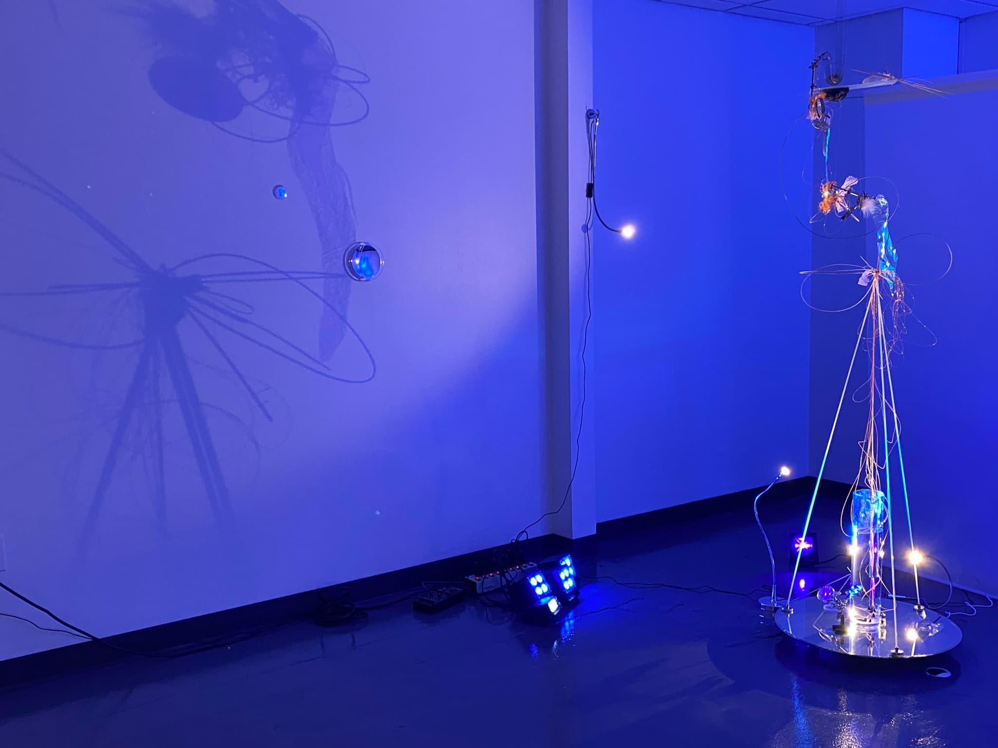 The emphasis of the gallery, which is free and open to the public, “is to highlight moving image art, performance art, and art that engages emergent technologies,” says Bradbury. “Spacetime” does that while simultaneously making space for people to engage in the performative aspect of the show. And that’s part of its allure.