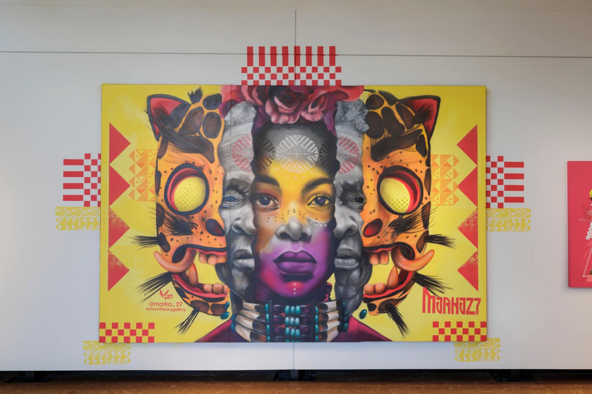 Victor “Marka27” Quiñonez, Warriors Reborn, 2022. Photo by Tom Correira. Courtesy of Boston University Art Galleries.