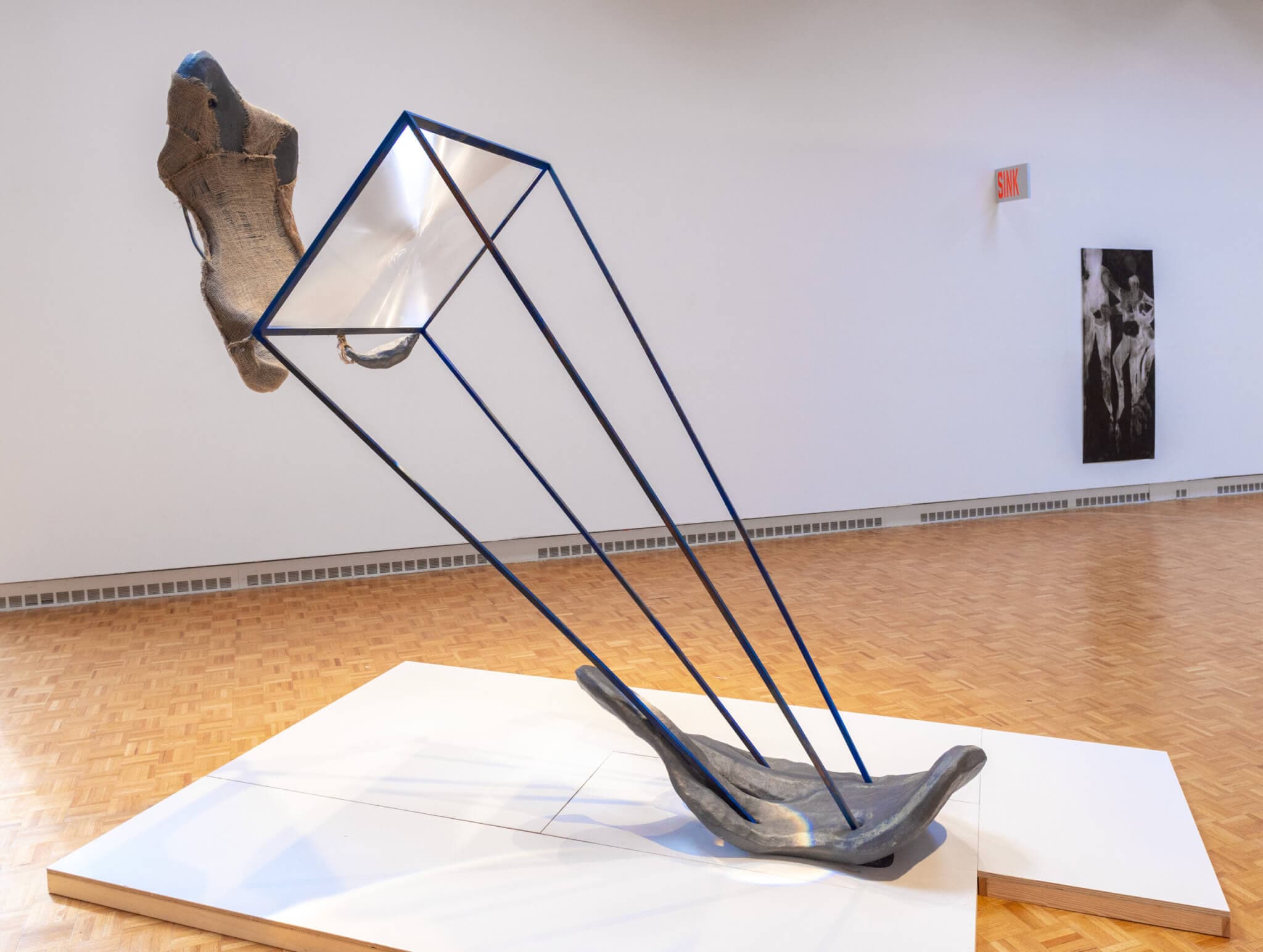 Whether through writing, bookmaking, sculpture, or drawing, Sreshta Rit Premnath’s practice consistently questions the borders and barriers—whether physical or systemic—that exert control over human bodies. For years, Premnath has created “slumps” that resemble bodies, but are rendered in such a way that they are contorted or affected by precarious sculptural forms. At Bennington’s Usdan Gallery, these invisible forces are the “overbody”—a metaphor for political power’s coercive weight. The still “slumps” can appear hauntingly lifeless or full of potential and resilience, depending on how you approach them. Premnath suggests the latter through a collaboration with Butoh dancers Mina Nishimura and Kota Yamazaki who have extended the sculptures into radical movement scores. —Jameson Johnson