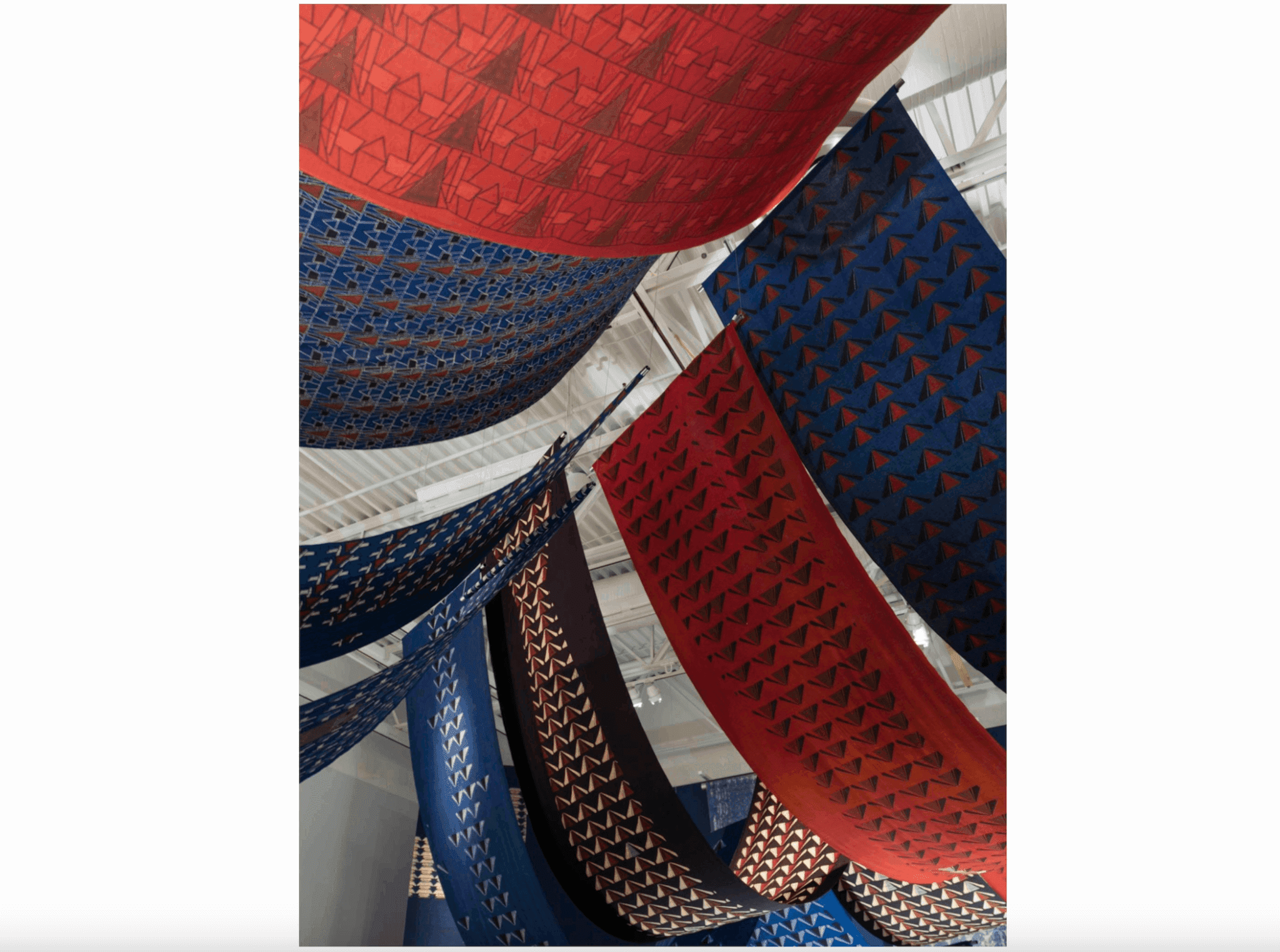In “Spaces That Hold,” Swapnaa Tamhane transforms the gallery at Mead Art Museum into an immersive, three-dimensional textile world. Known for the collaborative nature of her work, Tamhane often calls on traditional techniques and craftspeople in the creation of her geometrically patterned fabrics. In India, textiles are deeply entwined with histories of trade, empire, and independence. Cotton, in particular, has played a central role in shaping the economy, fueling colonial exploitation, and becoming a symbol of resistance in the struggle for liberation. Through her work, Tamhane explores these histories and confronts the legacies of colonialism by creating environments that surround and engage viewers, inviting them to move through—and be held by—her work. —Ava Mancing