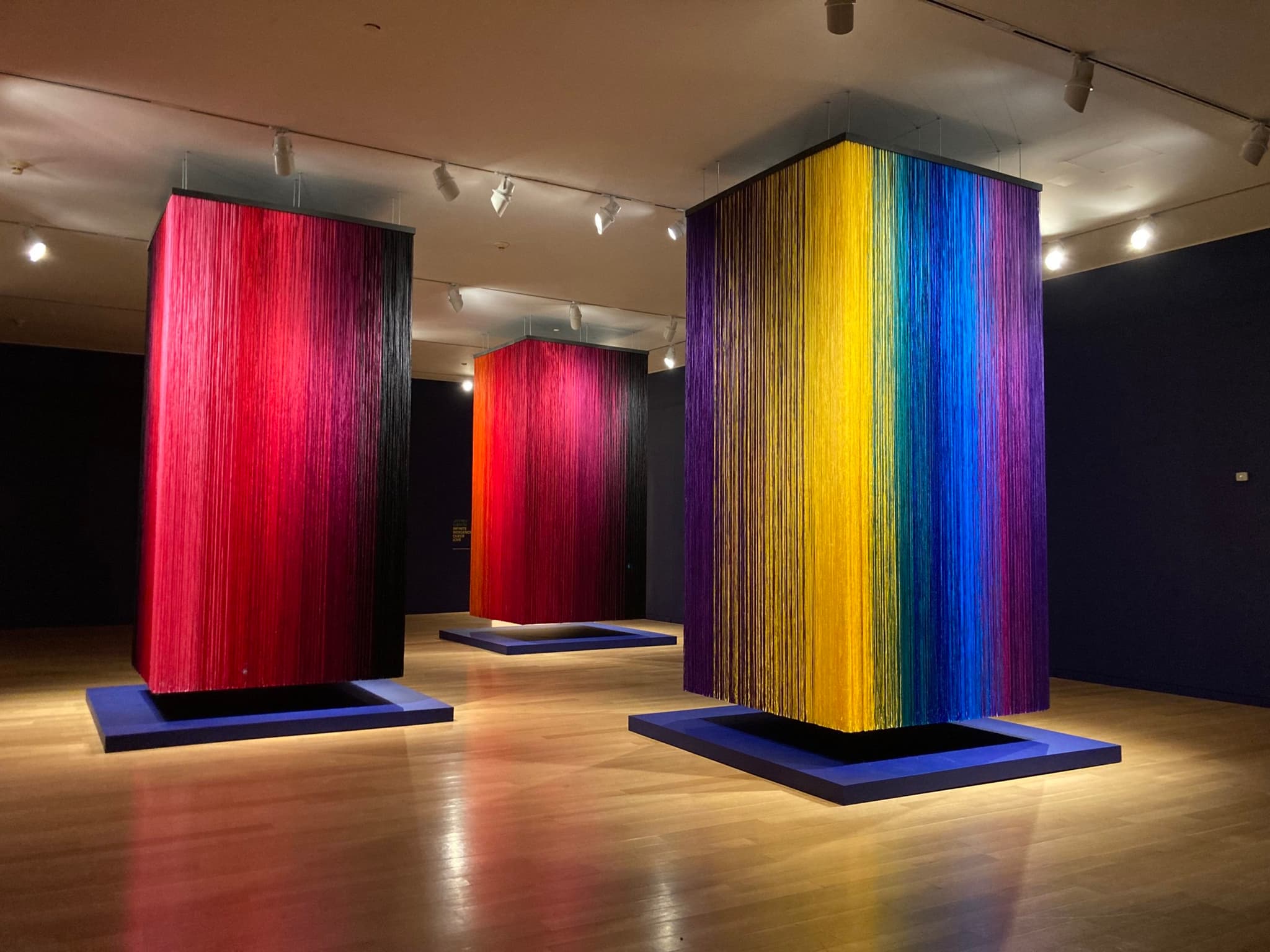 Installation view of “Jeffrey Gibson: INFINITE INDIGENOUS QUEER LOVE” at deCordova Sculpture Park and Museum. Photo by BAR Editorial.
