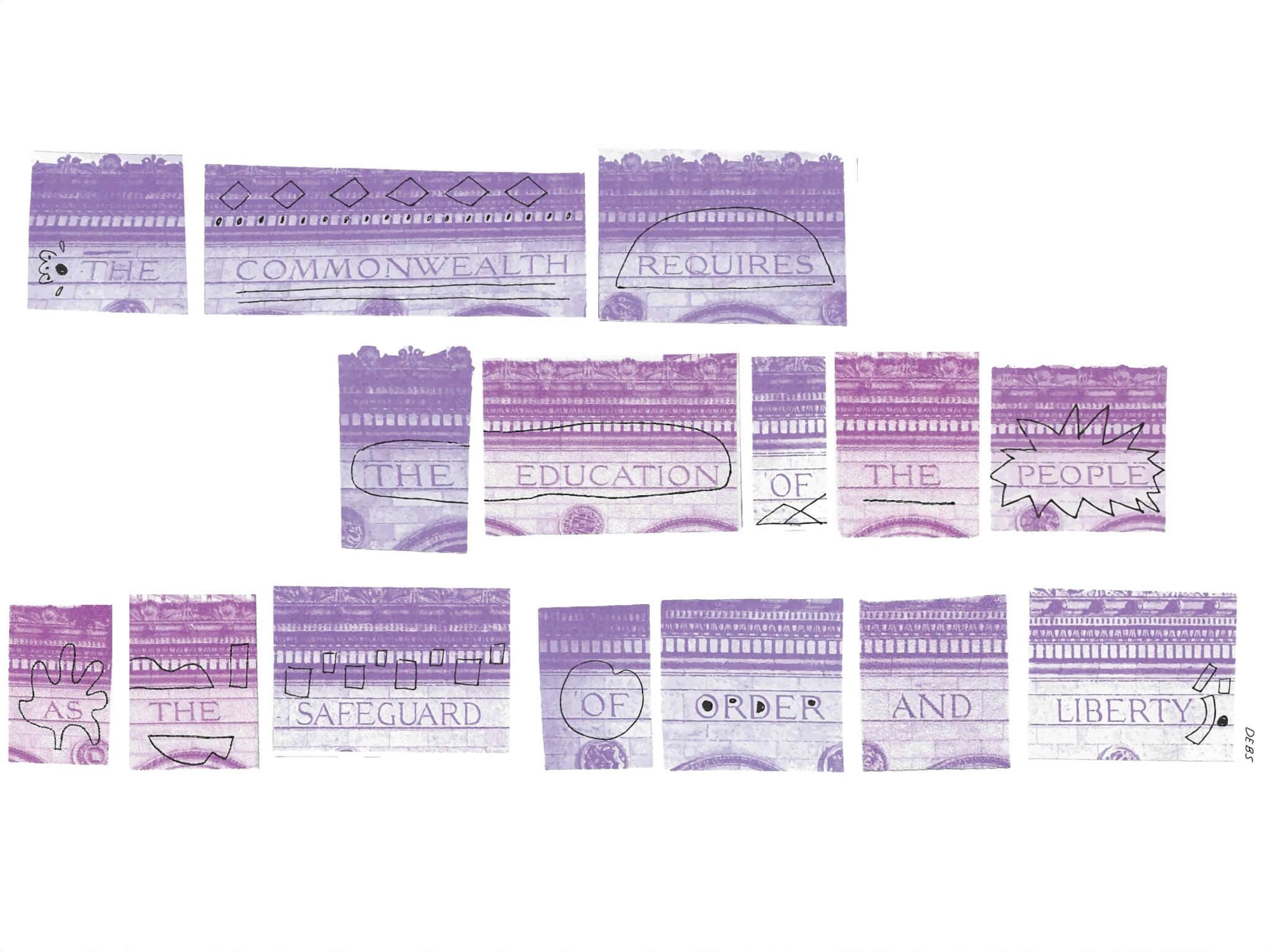I first encountered this inscription while rushing from the airport to attend a program on the desegregation of the public-school bus system in one of the library’s various ornate reading rooms. Established in 1848, the Boston Public Library is a pioneer of public library service in America. It was the first large free municipal library in the United States, the first public library to lend books, the first to have a branch library, and the first to have a children’s room. Boston Public Library holds more than twenty-three million items, estimated to be among the three largest collections in the country, including books, maps, manuscripts, letters, drawings, and other original works dating back as early as the tenth century. In one of the gathering rooms, I witnessed a dynamic cross-generational conversation on the history of segregation of Boston’s youth, the inequity of education, and the waves of resistance against it. I learned of the cross-institutional efforts to preserve and uplift this history, all with the unattributed inscription in my head: “The Commonwealth requires the education of the people as the safeguard of order and liberty.” Inside the library, I saw people from every walk of life coexisting and using the very necessary resources of the public institution. This is where the “un-ing” will happen; this is where societal change will occur. Not in the erection of more monuments but in the free sharing of knowledge.