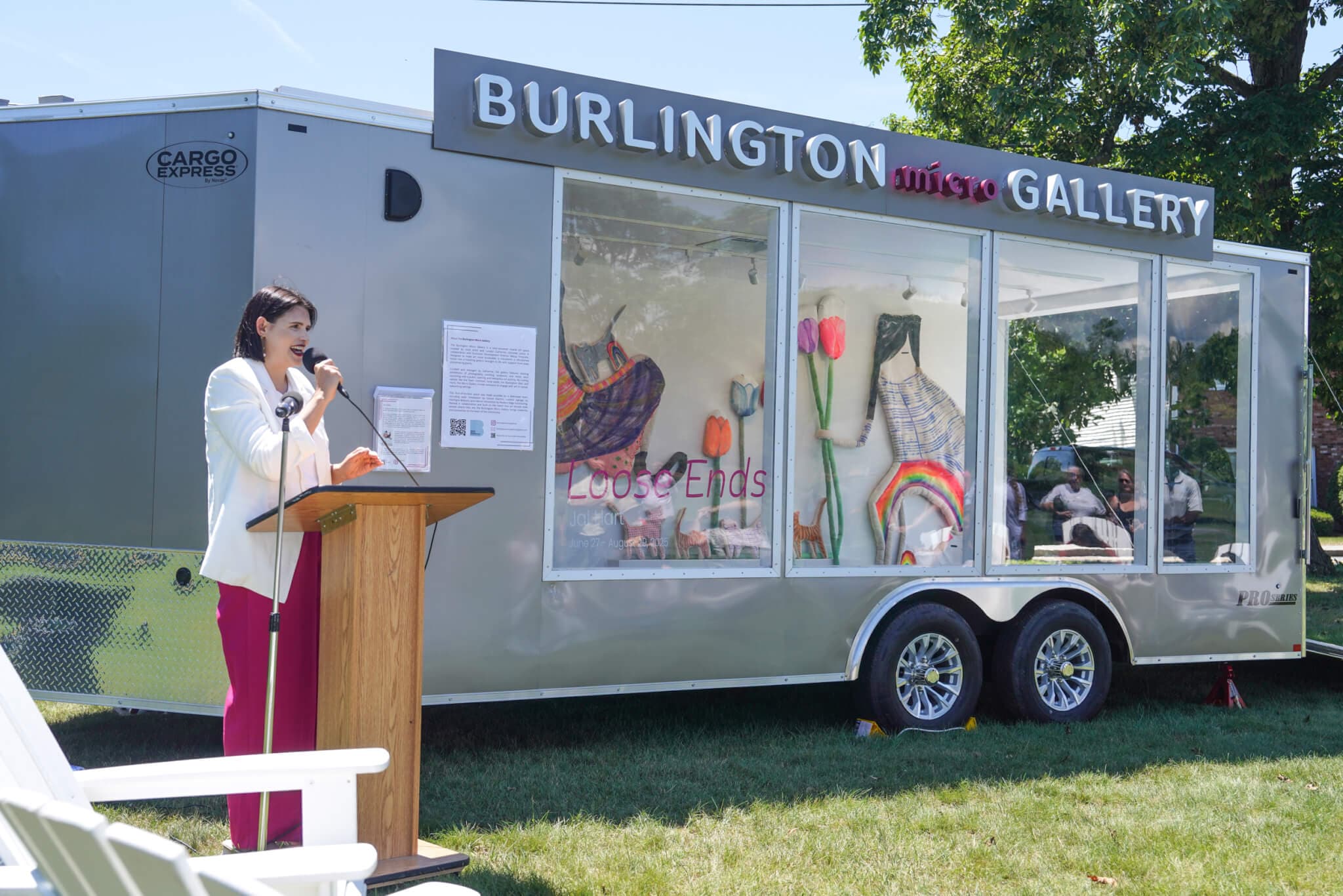 Jai Hart with her show “Loose Ends” at the launch of the Burlington Micro Gallery on June 27, 2025.