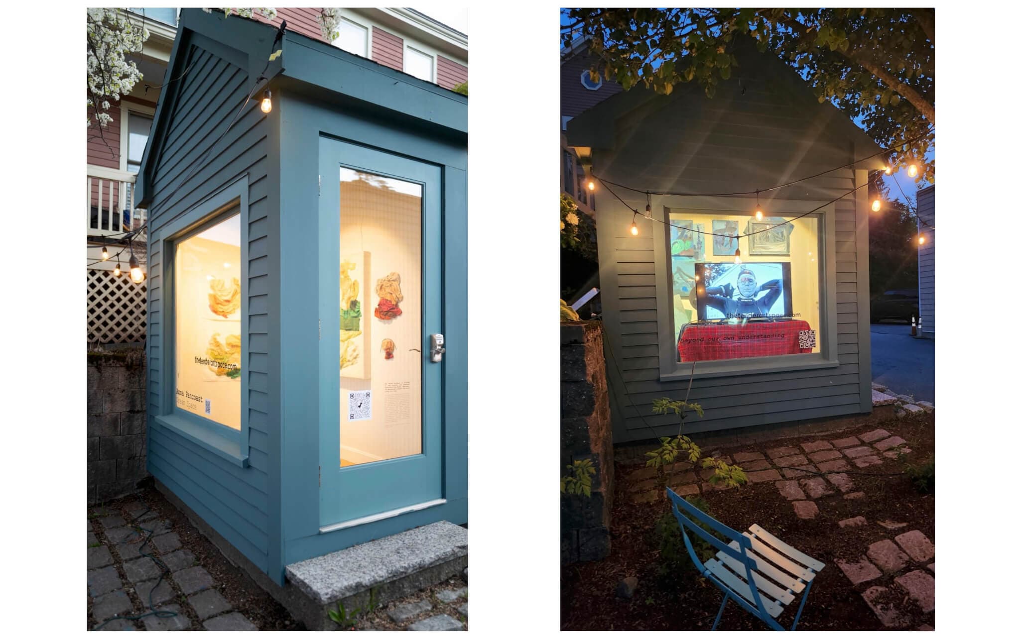 Left: “Dream Space,” a solo show by Anna Pancoast, was on view at the Tender in April 2024. Right: “beyond our own understanding,” a show by Darren Alexander Cole and Kate Martin Mytty, was on view at the Tender in August 2024.