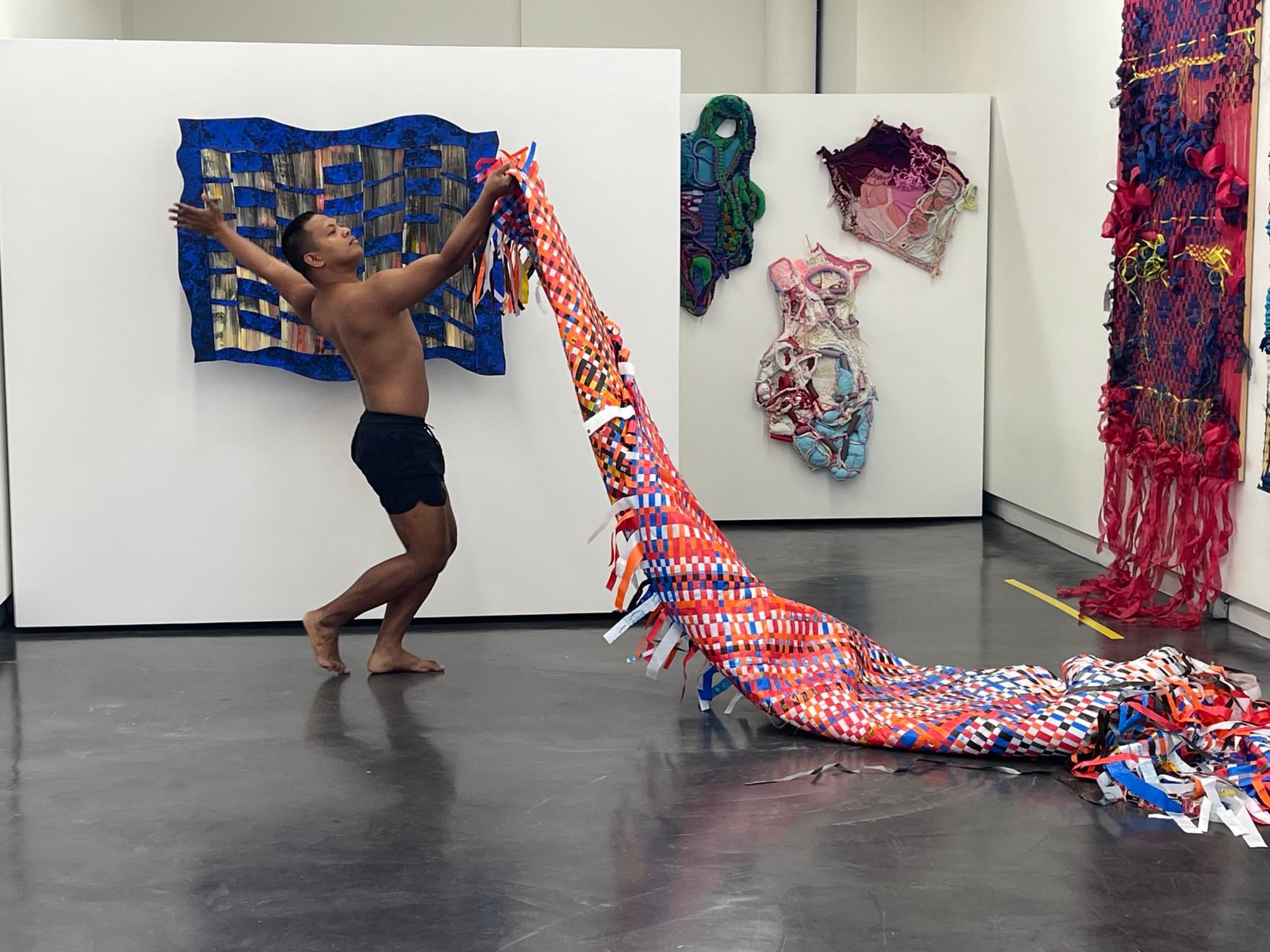 The artist’s vibrant multimedia weavings draw on his love of dance and his wide range of disciplines, influences, and past experiences. Now, he’s returning to his roots.