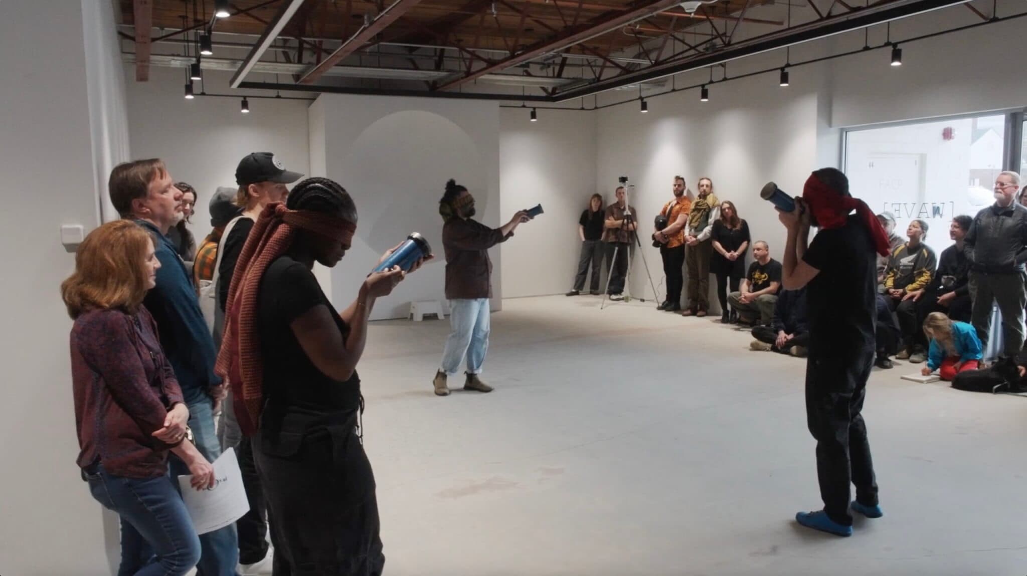 Erik DeLuca, Qais Assali, and Enongo A. Lumumba-Kasongo. Performance, “[see] [saw] [sound] [wave],” Fall River MoCA, 2025. Photo courtesy of Shana Garr.