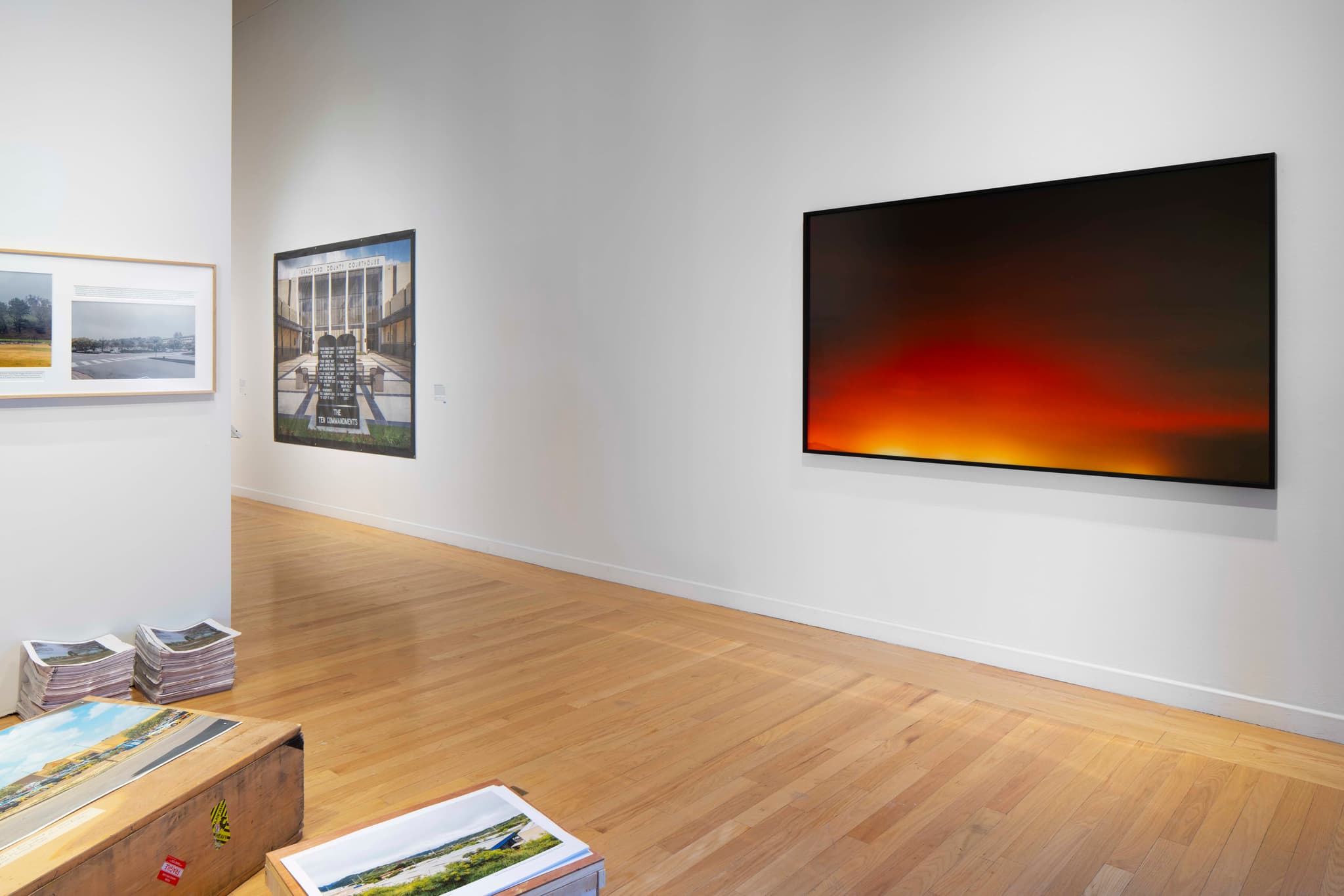 (Right) Trevor Paglen, Color Study (San Quentin State Prison, San Quentin, CA), 2016, installation view. Photo: Peter Harris.