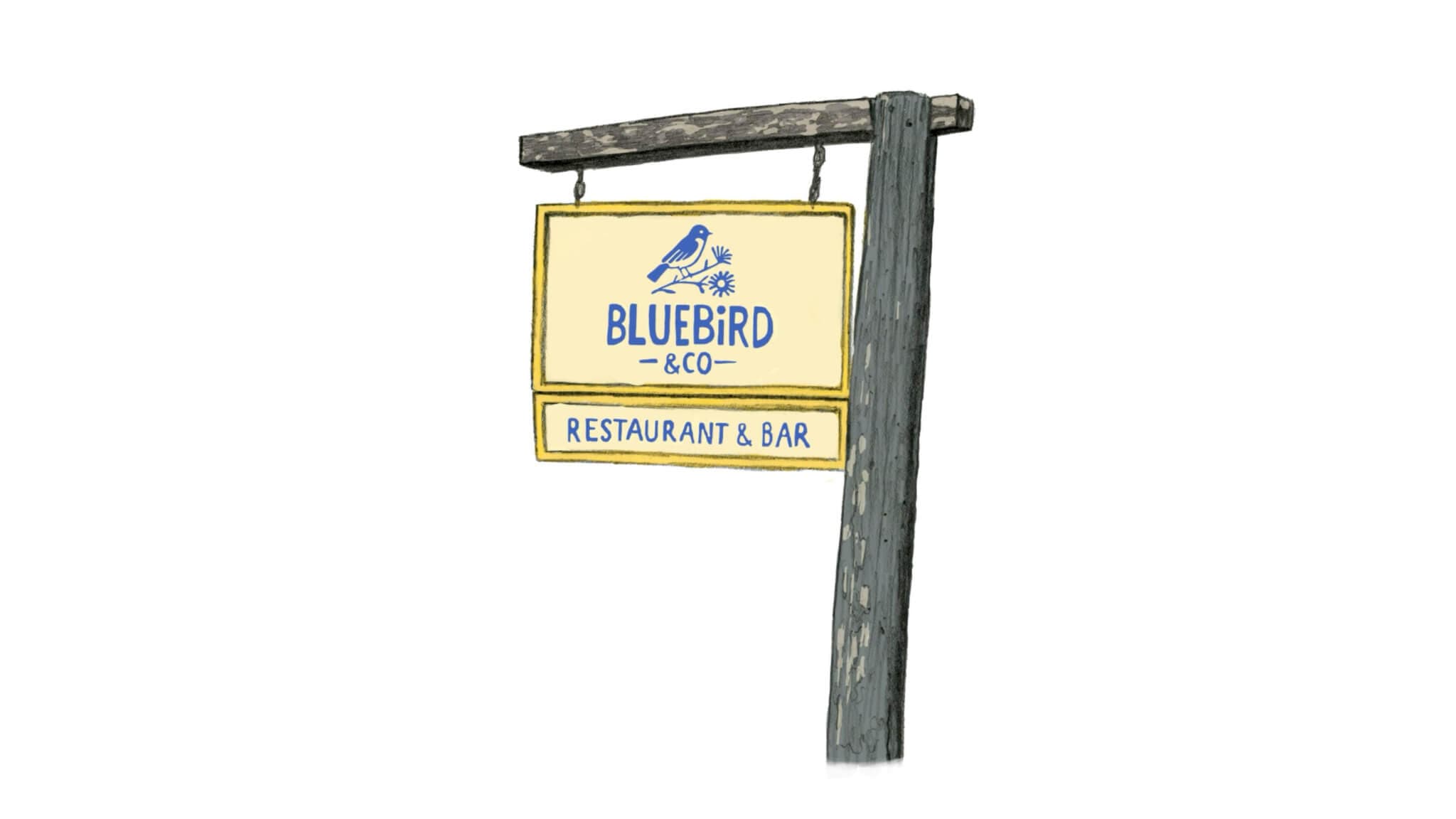 Illustration of the Bluebird & Co. road sign by Michelle Stevens.
