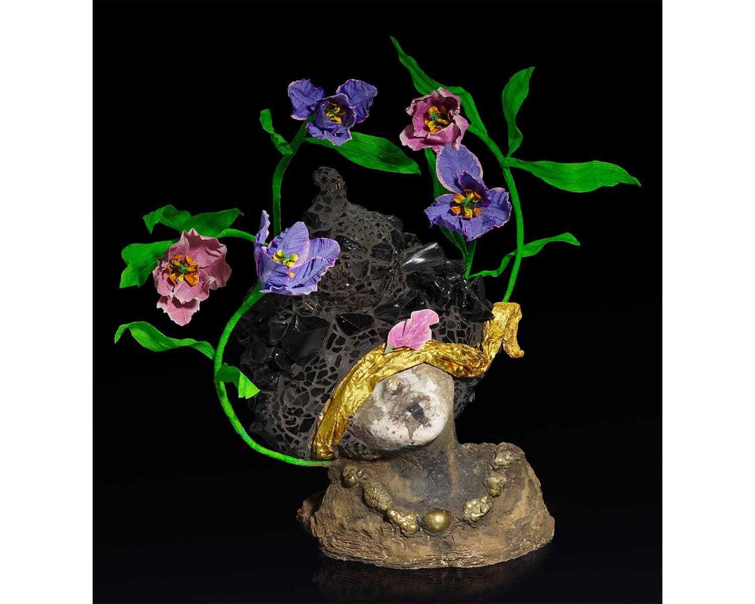 Fabiola Jean-Louis (Haitian, 1978–), Out of Obsidian, 2024. Obsidian Stone, 23K gold, paper. ©2024 Fabiola Jean-Louis. Photo: Isabella Stewart Gardner Museum, Boston
