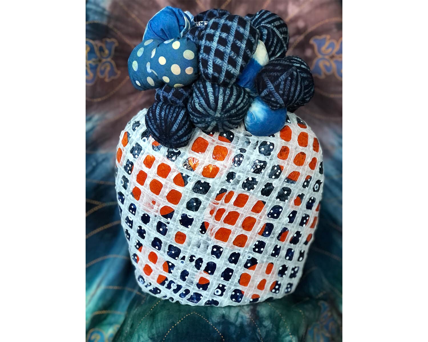 Ifé Franklin is a storyteller through and through. For over a decade, Franklin has created a body of work under The Indigo Project, which honors the lives and legacies of formerly enslaved individuals by pulling overlooked histories and cultural traditions into the present through powerful installations, performances, processions, writing, and sacred objects. At Bentley University’s RSM Gallery, her solo exhibition “The Resurrection of Ifé Franklin” functions as a mini retrospective that highlights the craft, research, and spirituality that is central to Franklin’s practice. Working with adire fabric—a traditional Yoruba technique for indigo-dying cotton with deep blues and rich white relief patterns—Franklin has created replicas of slave cabins that become sites for community gatherings and honoring ancestors. Inside the gallery, panels from her 2017 slave cabin installation hang from the ceiling. Franklin’s work is always operating across multiple realms: sculptures and drawings that incorporate symbols from the Kongo cosmogram reveal connections between cosmic and cellular systems, while the debut of her conjure bottles are informed by the Nkisi tradition of creating vessels that are believed to be inhabited by the spirits of ancestors. While rich with history and homage, Franklin’s work is made distinct by the joy and tenacity she brings to everything she touches.