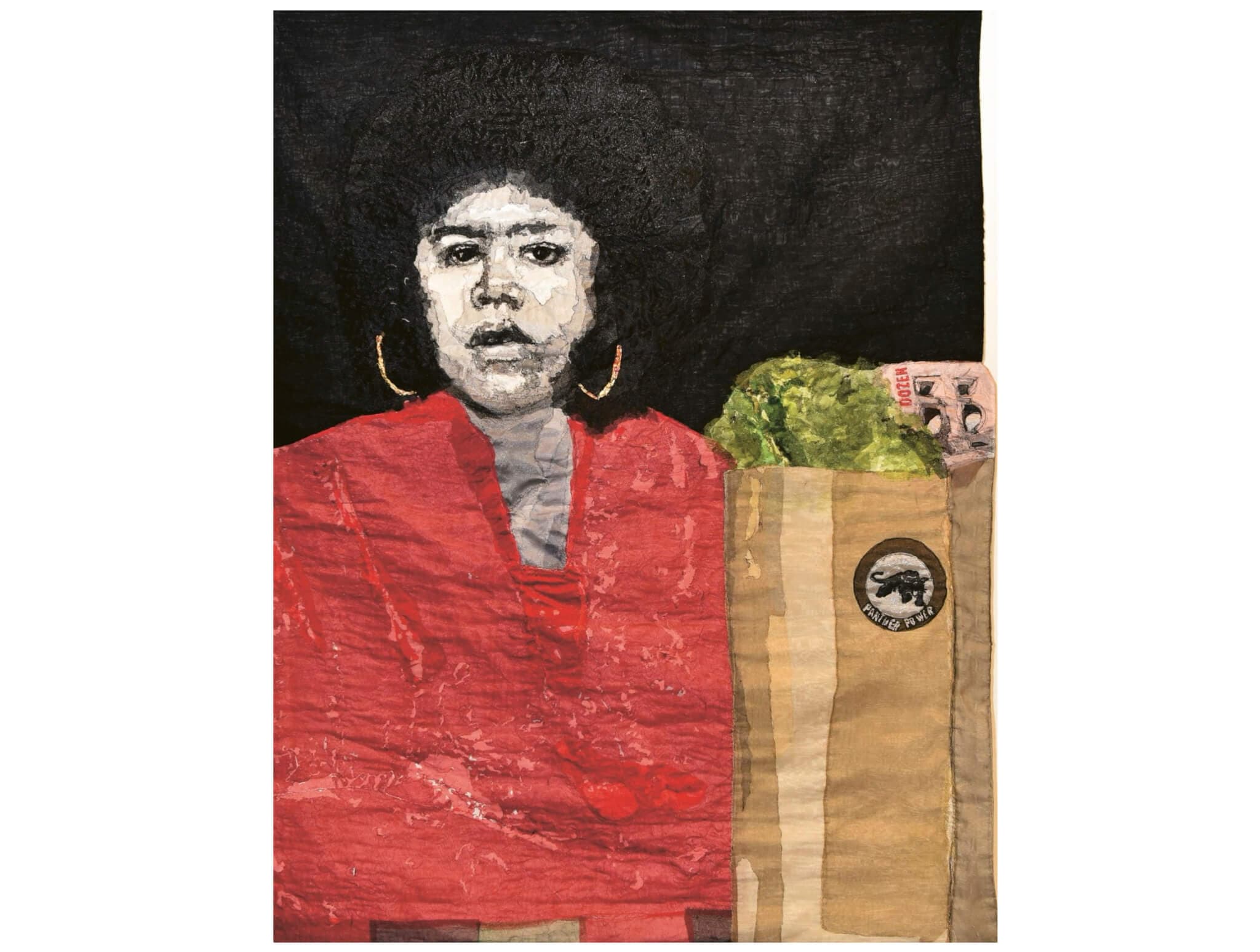L’Merchie Frazier, Ericka Huggins: Liberation Groceries, 2019. Thinsulate fabrics, nylon, and synthetic tape. 50 × 40 inches (127 × 101.6 cm). Courtesy the artist. Photo by Craig Bailey / Perspective Photo. © L’Merchie Frazie.
