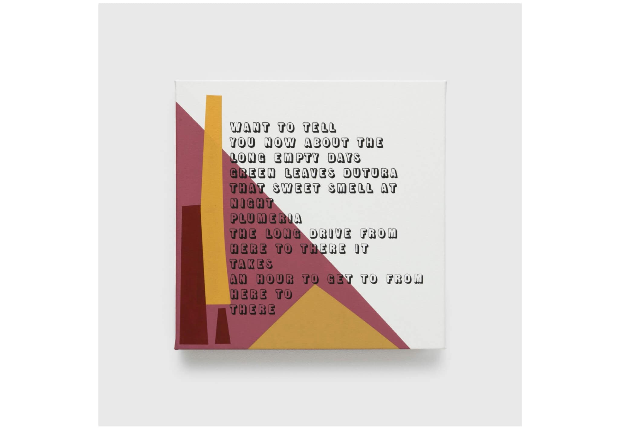 Eve Fowler, I want to tell you, 2025. Flashe and acrylic ink on canvas, 18 x 18 x 1 ½ inches. Photo by Greg Carideo. Courtesy the artist and Gordon Robichaux.