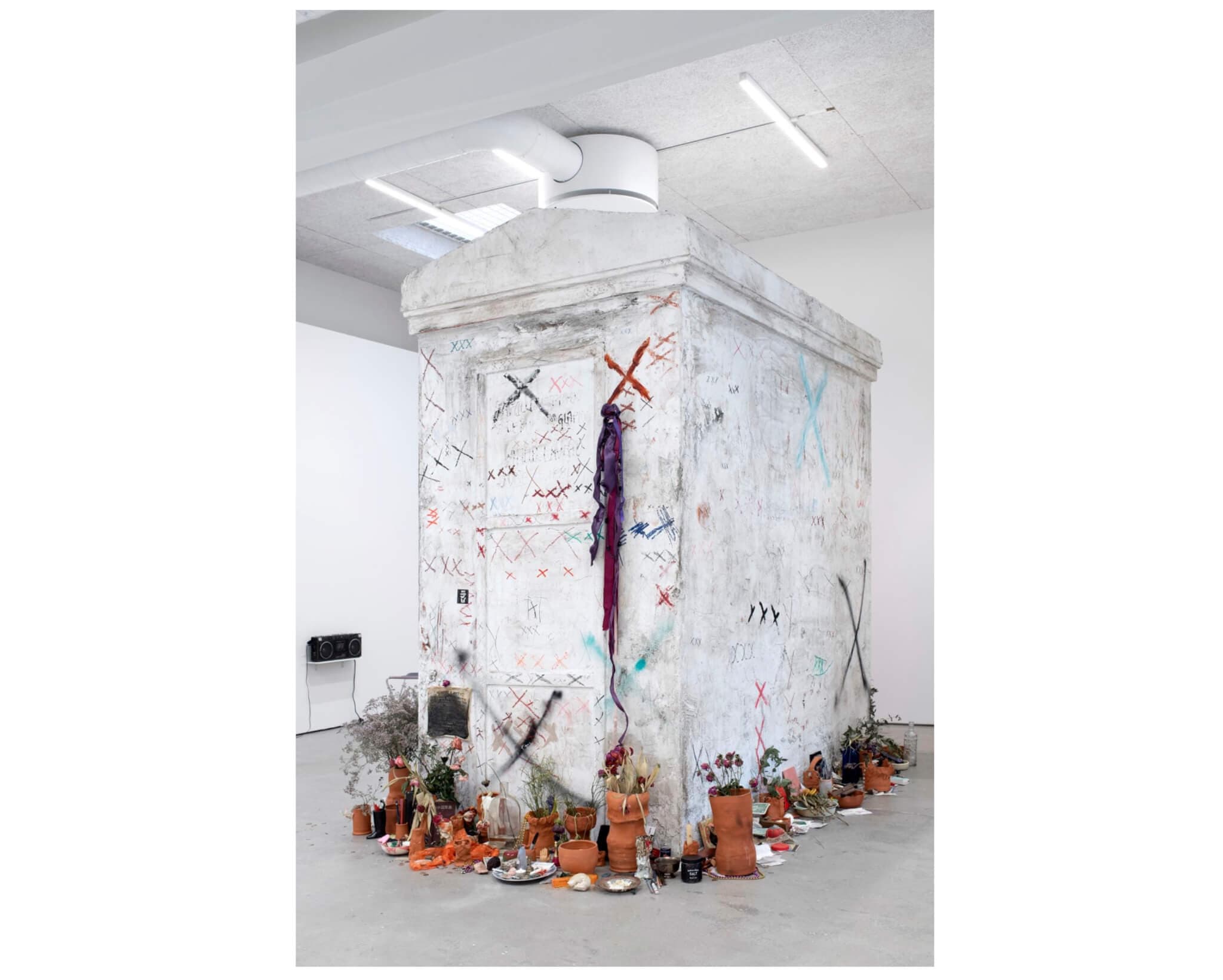 For our spring 2025 issue, ceramicist Jennie Jieun Lee shared that every new show “begin[s] with a small piece of clay manipulated by my hand.” For her first solo exhibition at Connecticut’s Aldrich Contemporary Art Museum, “Luteal Elements and Grooves,” that hand is present in a series of recent and new sculptures that celebrates the expansive and accretive qualities of the human condition—and the artist’s own practice. Lee’s work embraces a plurality of references—Western and Eastern, old and new—from the full range of the arts (music, film, literature), amassed in part during her time as first a student and now a professor at the School of Fine Arts at Tufts University. Viewers are treated to the panoply of these layered expressions—rendered intimate in ceramics assembled on abandoned kilns, magnified on a monumental textile work—and are even encouraged to leave their own imprints in the form of marks and offerings on Marie (2022), a life-sized sculptural recreation of Marie “the Voodoo Queen of New Orleans” Laveau’s nineteenth-century tomb. —Jessica Shearer