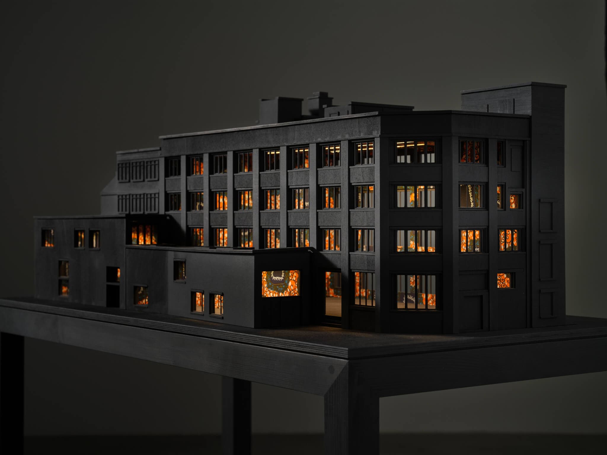 Yinka Shonibare CBE, Sanctuary City (Amnesty International), 2024. Wood, paint, Dutch wax printed cotton textile, LED lights. Courtesy of Tia Collection. Courtesy of the artist and Goodman Gallery, Cape Town, Johannesburg, London, and New York, James Cohan Gallery, New York, and Stephen Friedman Gallery, London and New York. Photo by Jo Underhill. © Yinka Shonibare CBE. All rights reserved, DACS 2025.