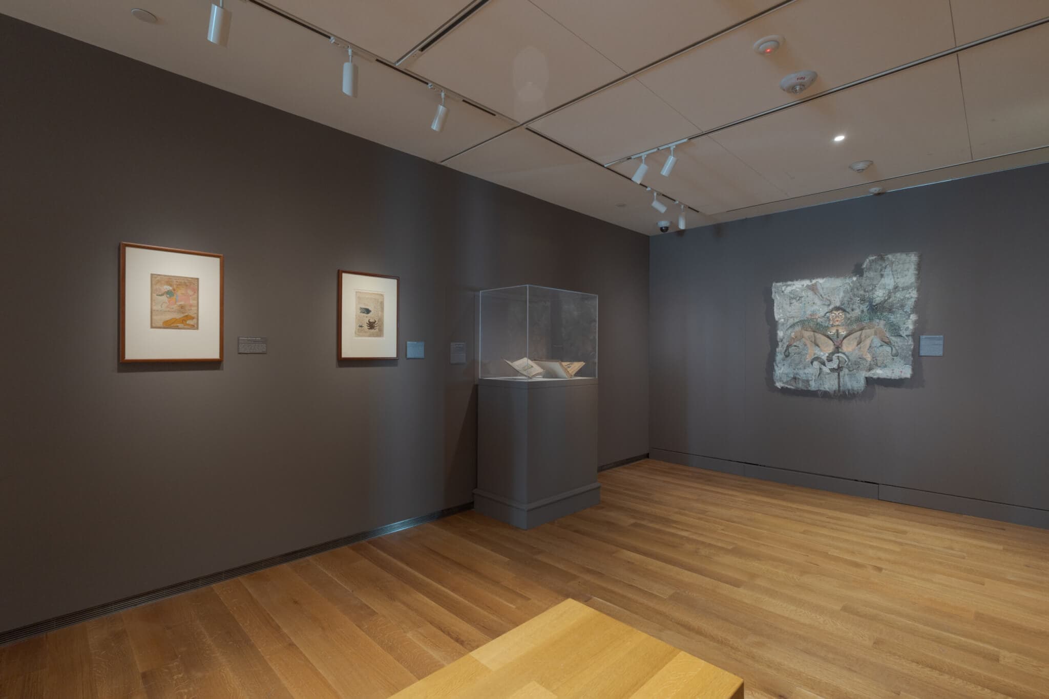(far right) Hayv Kahraman, Ghuraba, 2024. Installation view, “Wonders of Creation: Art, Science, and Innovation in the Islamic World.,” McMullen Museum of Art, Boston College, 2025. Courtesy of McMullen Museum of Art.